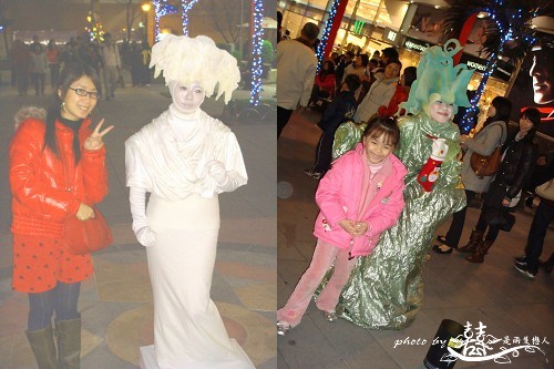 她們是用很醒目的裝扮!定點不動~偶爾會跟觀眾有點互動~~