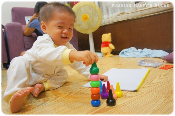 (他不是該拿來畫畫ㄇ~~怎麼還是積木!!)