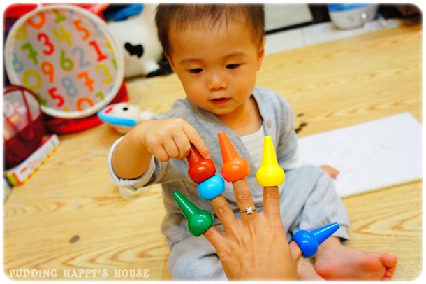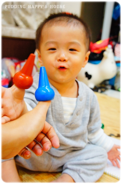 他看到我塞蠟筆再自己的大姆指,也說要幫我放ㄟ