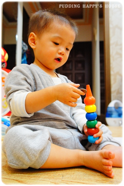 我說不能吃之後,他開始堆起積木來~~~~~~~