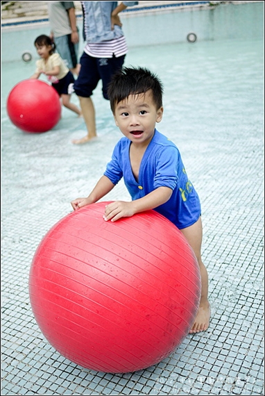 寶兒一開始下水還是怕怕的,好在有寶外公的愛~緊緊牽牢