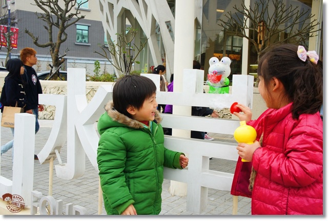 中間等待過程,當然是帶小孩去戶外草皮區放風啊